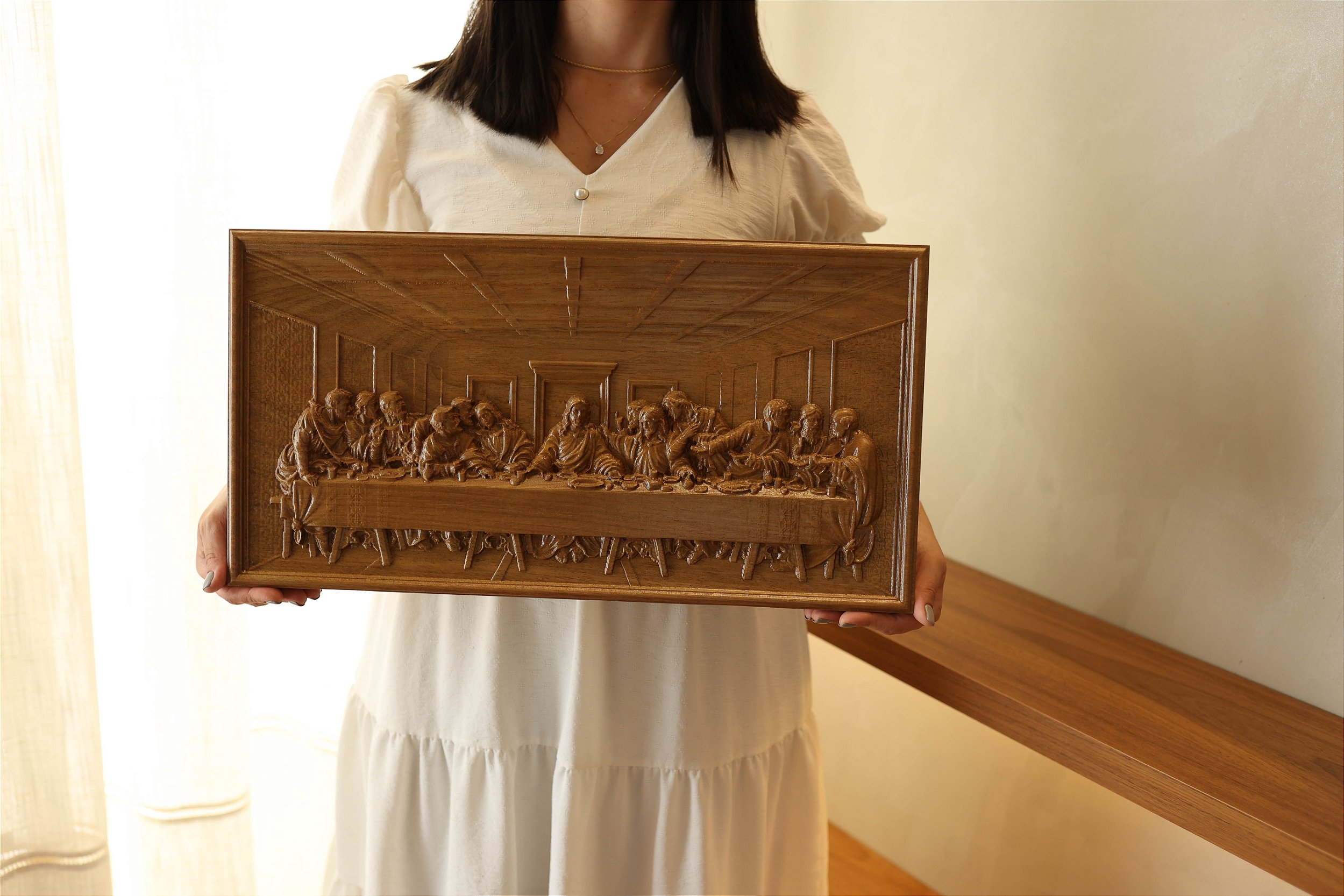 Santa ceia - Entalhada em madeira maciça nobre, acabamento Natural com cera de abelha.