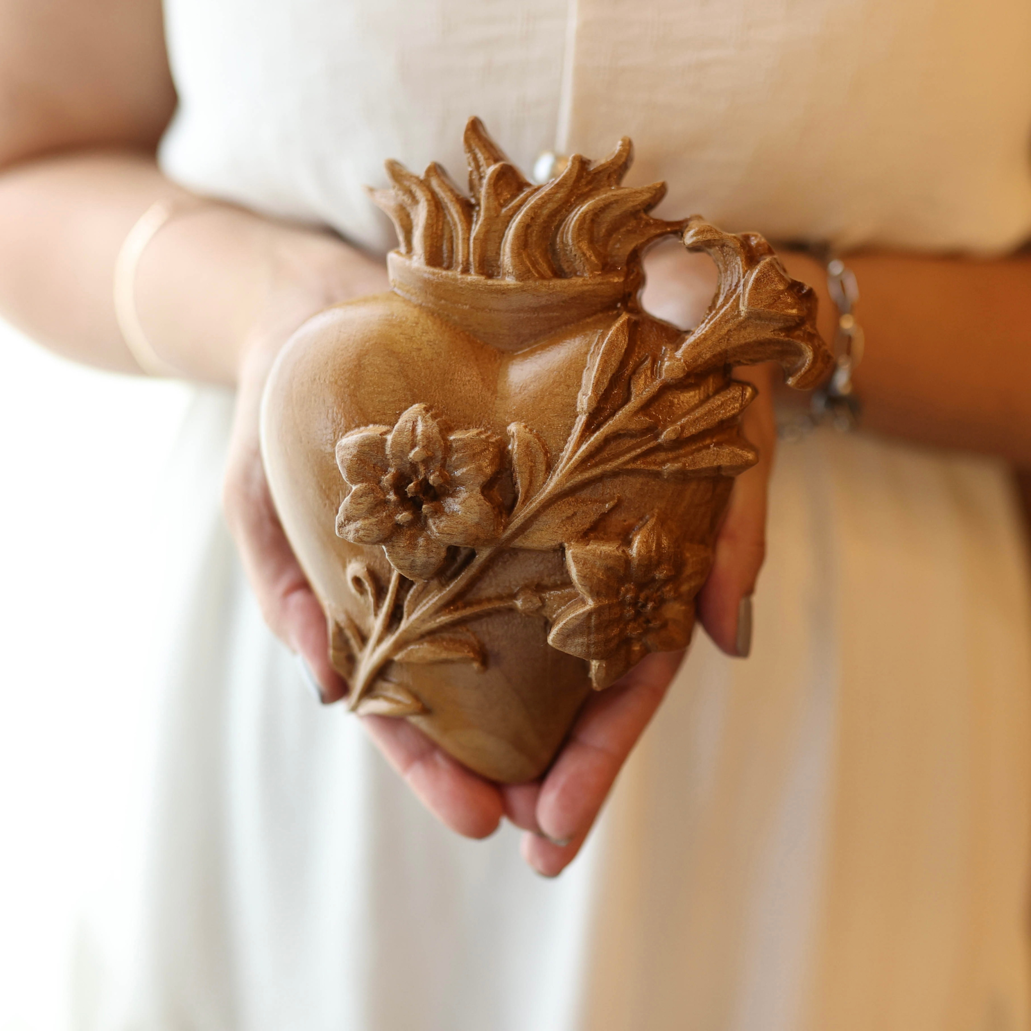 Entalhado em madeira maciça nobre, Acabamento Natural com cera de abelha.
