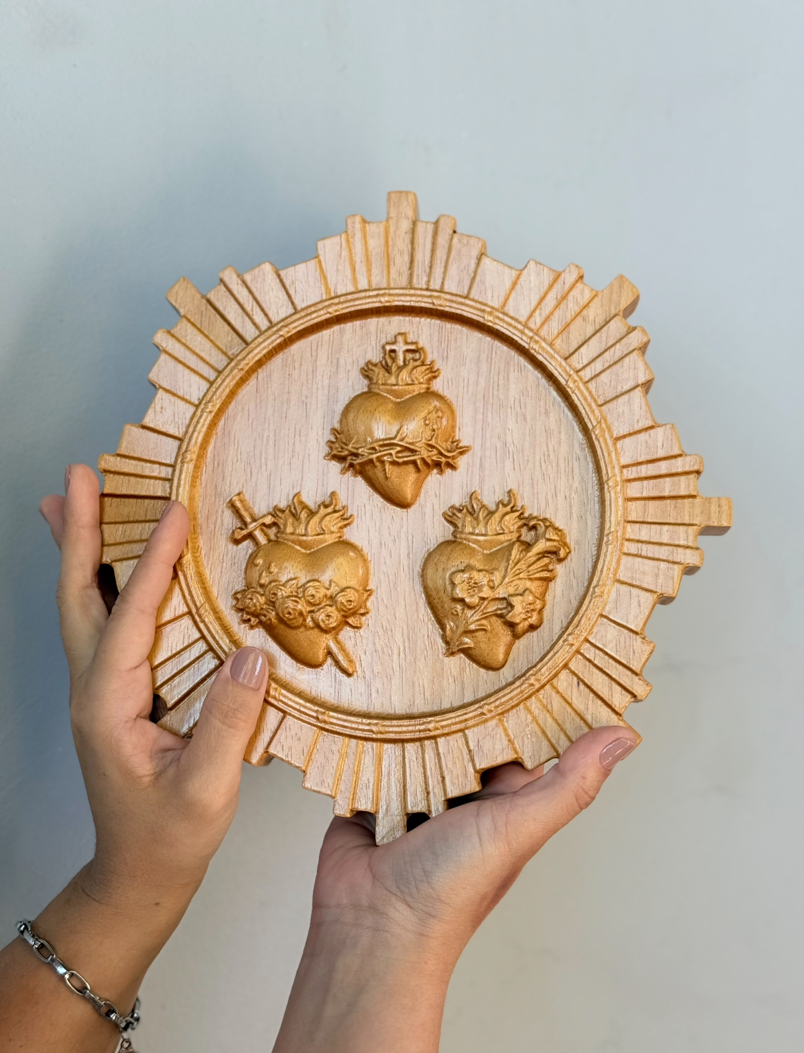 Entalhado em madeira maciça nobre. Acabamento Natural com cera de abelha.