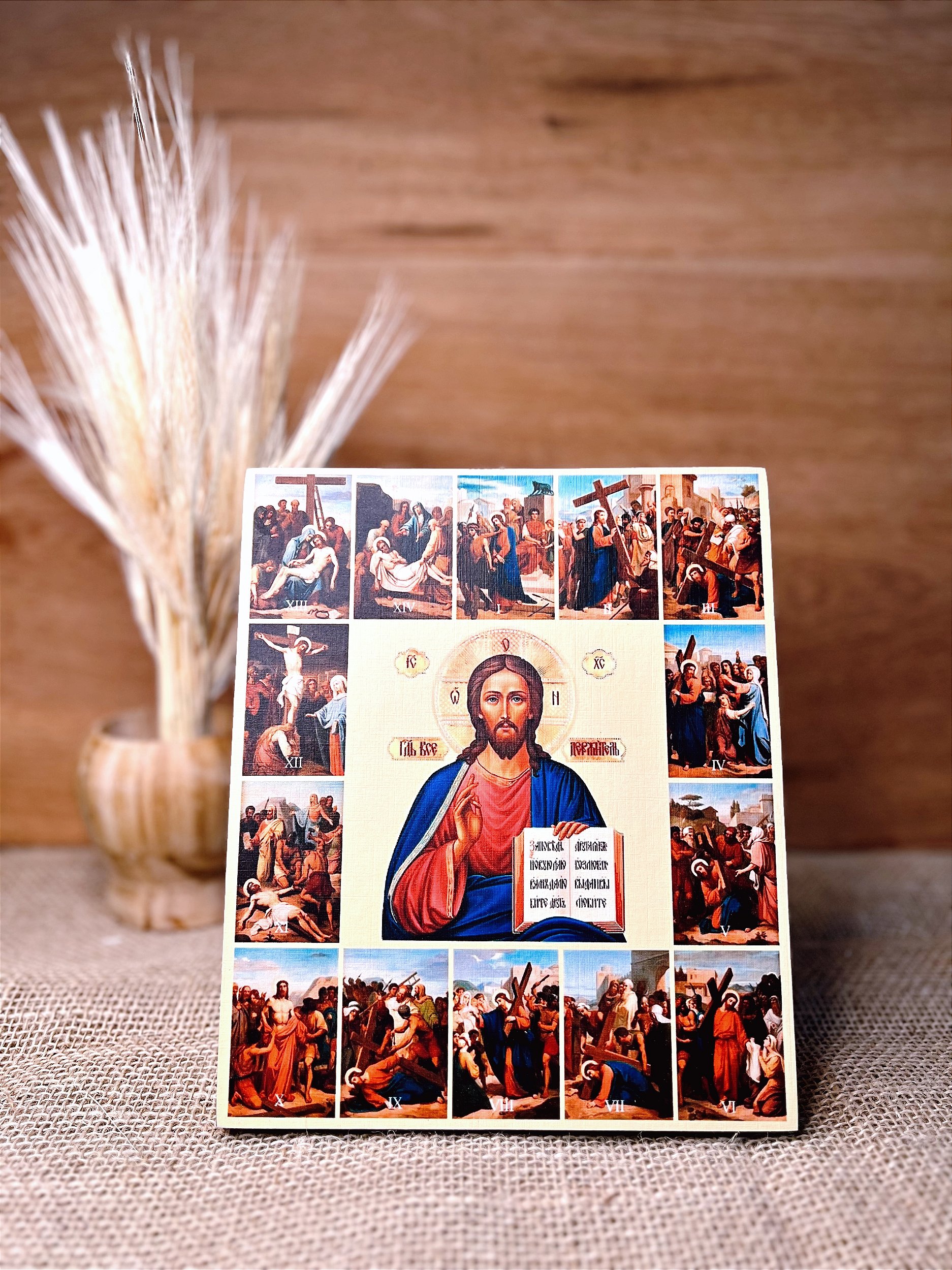 Ícone produzido em madeira maciça, com imagem de alta qualidade, impressa digitalmente.