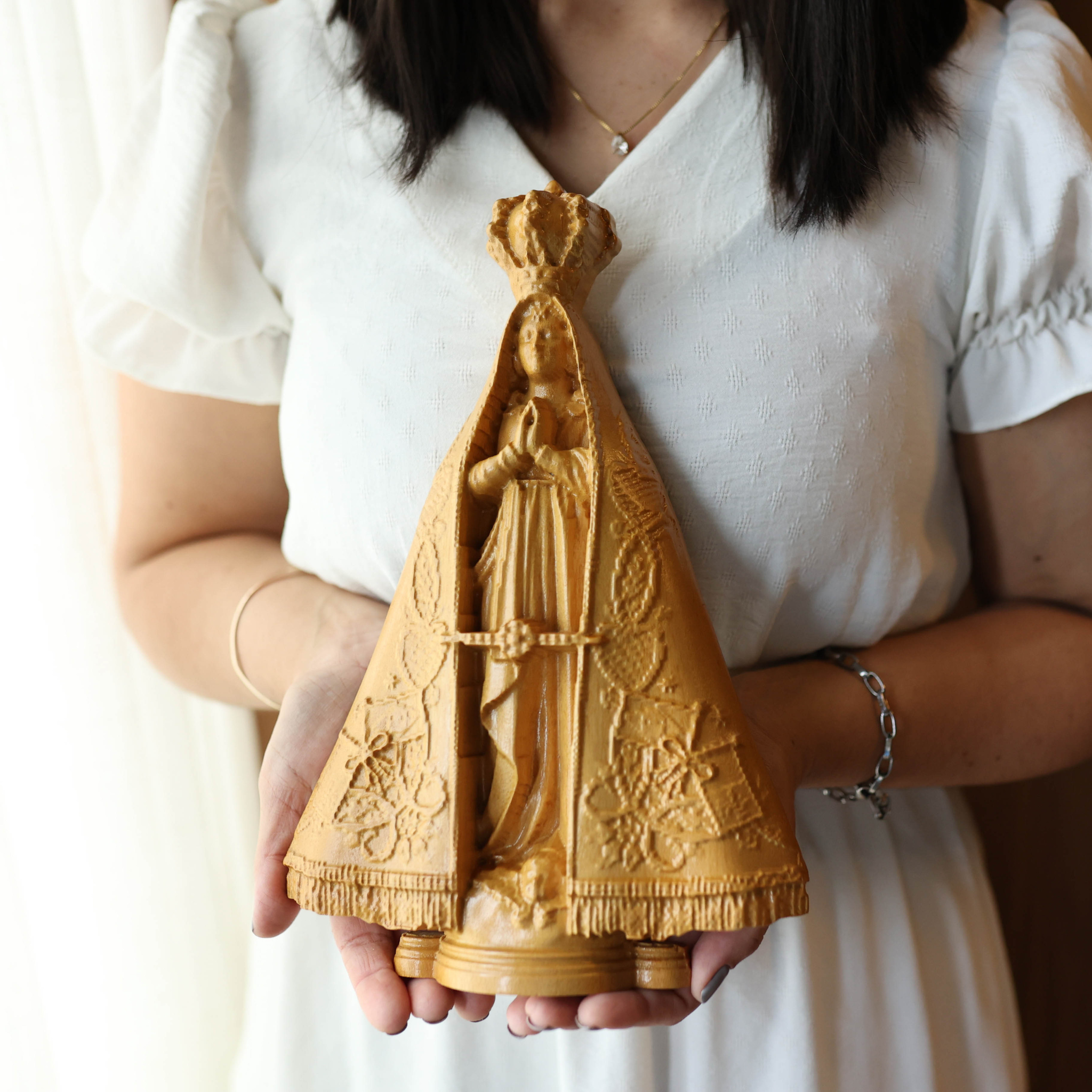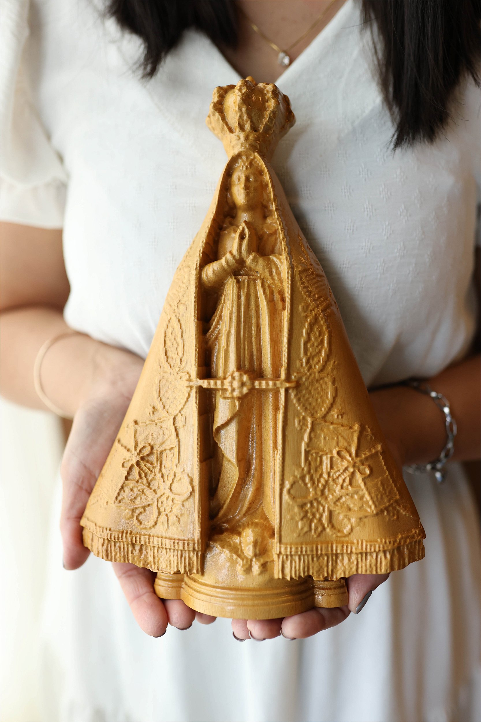 Nossa Senhora Aparecida entalhada em madeira maciça nobre.