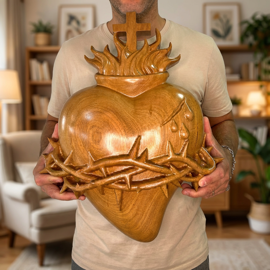 Entalhado em madeira maciça nobre. Acabamento Natural com cera de abelha.