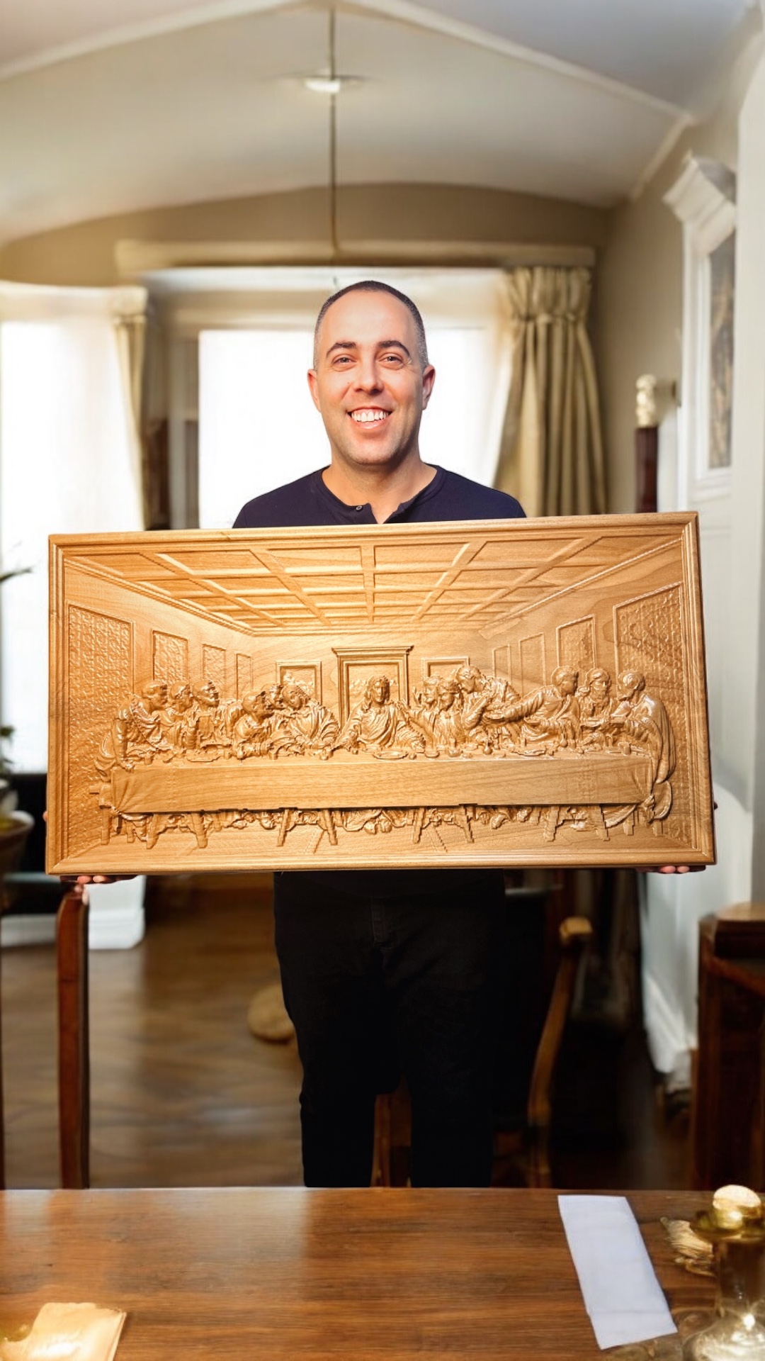 Santa ceia - Entalhada em madeira maciça nobre, acabamento Natural com cera de abelha.