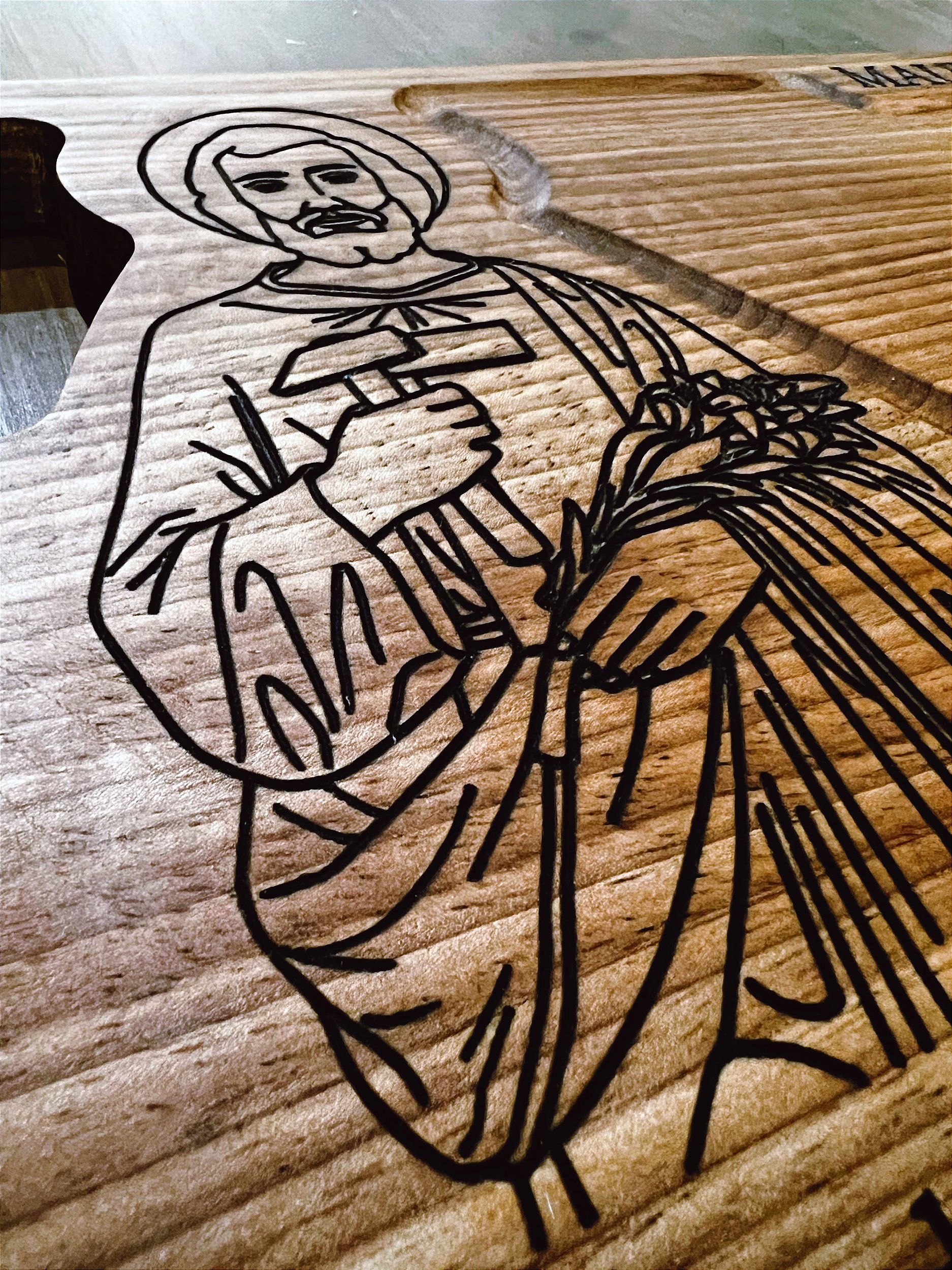 Tábuas em madeira maciça, com entalhes em 2D.